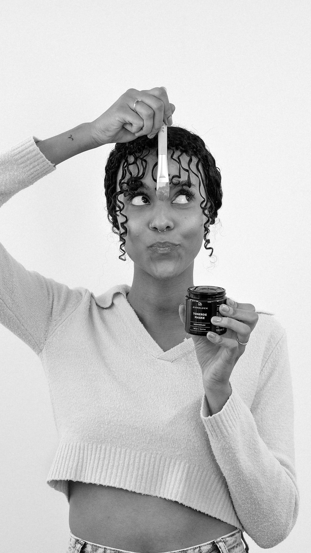 Für meinen extra Peeling-Effekt massiere ich die angetrocknete Maske nach der Einwirkzeit mit nassen Händen nochmal ein. Die feinen Tonpartikel hinterlassen so eine wunderbar glatte Haut!