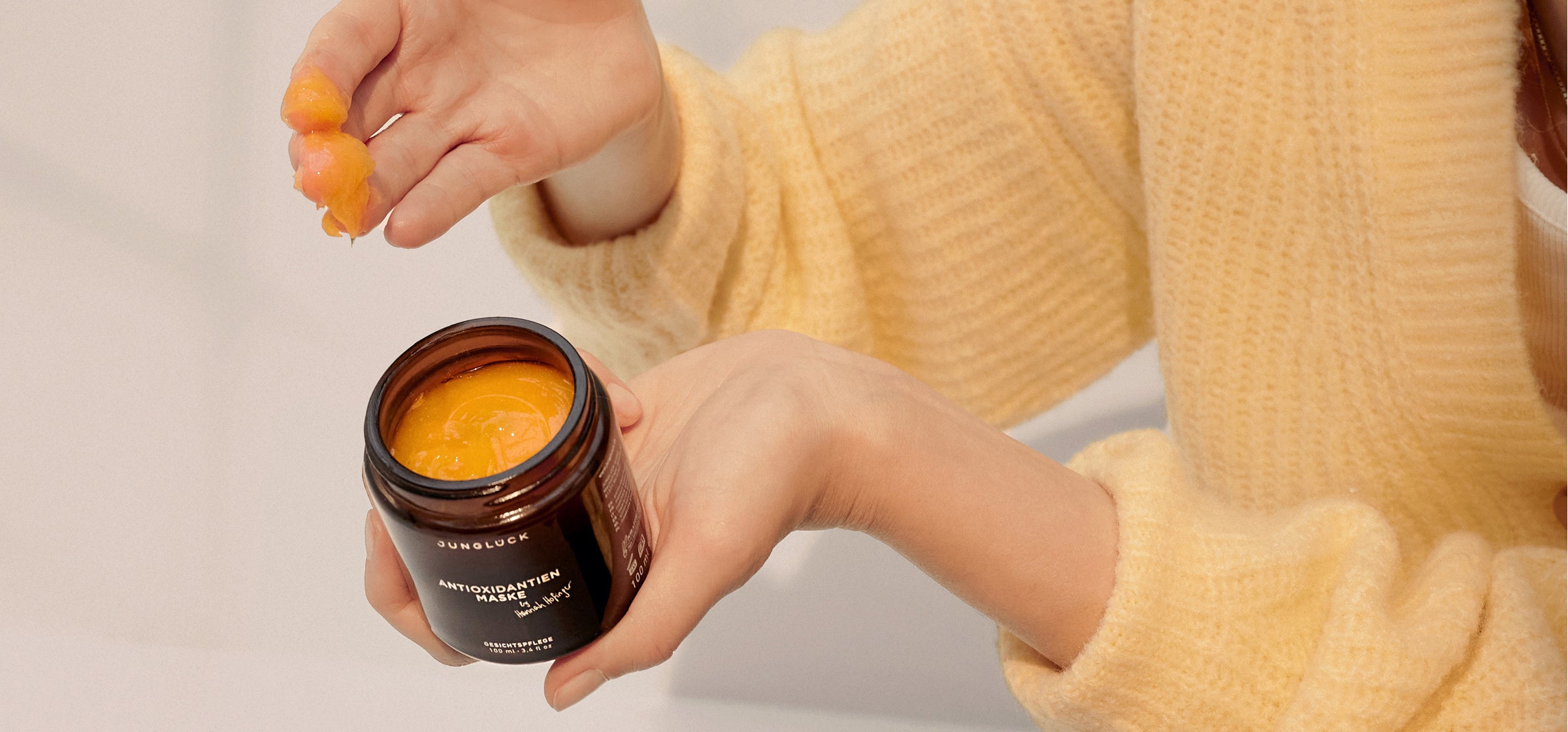 Mit dieser Maske tust du deiner Haut und dir selbst etwas Gutes. Denn während deiner Auszeit, tankst du Kraft, regenerierst und zu stärkst deine Haut. Nutze die Einwirkzeit, um dir ganz bewusst Zeit für dich zu nehmen. Auch wenn es bei dir vielleicht mal nur genau diese 15 Minuten sind – mach sie zu deinem persönlichen Entspannungsritual. Sei in dieser Zeit ganz bei dir selbst und gestalte sie so, wie du es aktuell brauchst. So schützt du deine Haut vor oxidativem Stress, während du auch dein inneres Stresslevel senkst. Und das wirkt sich natürlich positiv auf deine Haut, deinen Körper und dein Gemüt aus.