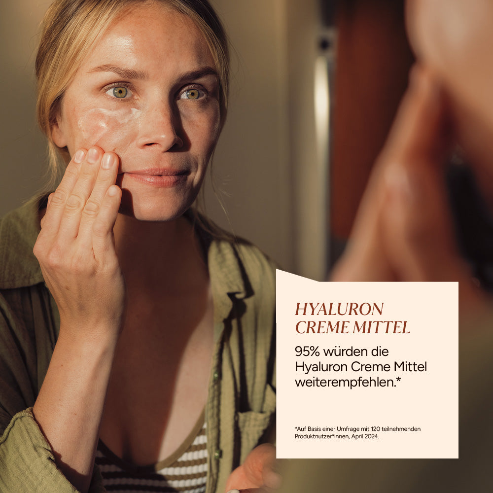Das Pro-Kollagen Serum ist dein Gamechanger für straffere und elastischere Haut. Es unterstützt die Kollagenproduktion und beugt so ersten Anzeichen der Hautalterung vor, mindert bestehende Falten sichtbar und wirkt so optimal für jüngere und reifere Haut.In Kombination mit der Hyaluron Creme Mittel versorgst du deine Haut zusätzlich mit ausgewogener Pflege. Sie beruhigt, spendet intensive Feuchtigkeit und stärkt die Hautbarriere. Gemeinsam sind die beiden die perfekte Kombi für straffe, regenerierte Haut, egal ob du vorbeugen oder regenerieren möchtest.