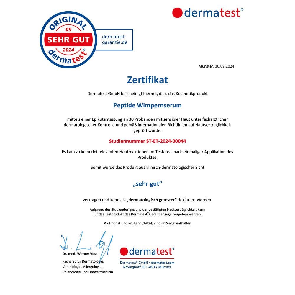 Zertifikat Dermatest Peptide Wimpernserum